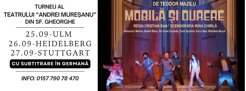 Turneu de teatru – „MOBILĂ ȘI DURERE” cu Teatrul Andrei Mureșanu din Sf. Gheorghe Publicat pe 2. septembrie 202519. septembrie 2025 de admin Rezervări pe WhatsApp